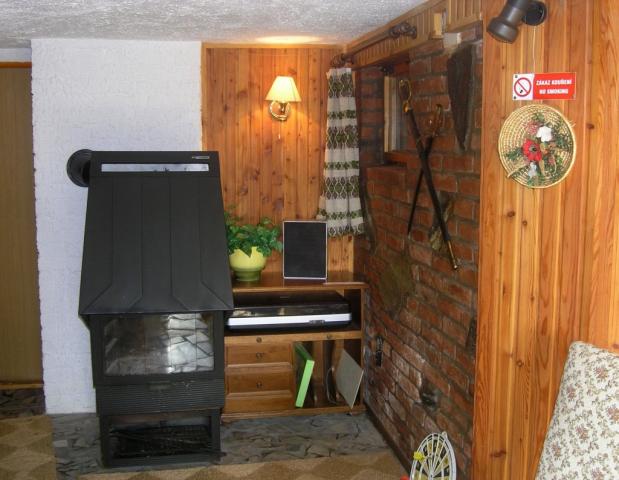 rádio, vaření: sklokeramický sporák s elektrickou troubou, počet plotýnek: 4, typ vytápění: elektrika + tuhá paliva lokální (obsluhuje host), Ohřev vody: elektrický bojler (objem: 80 l), možnost kouření: ne |