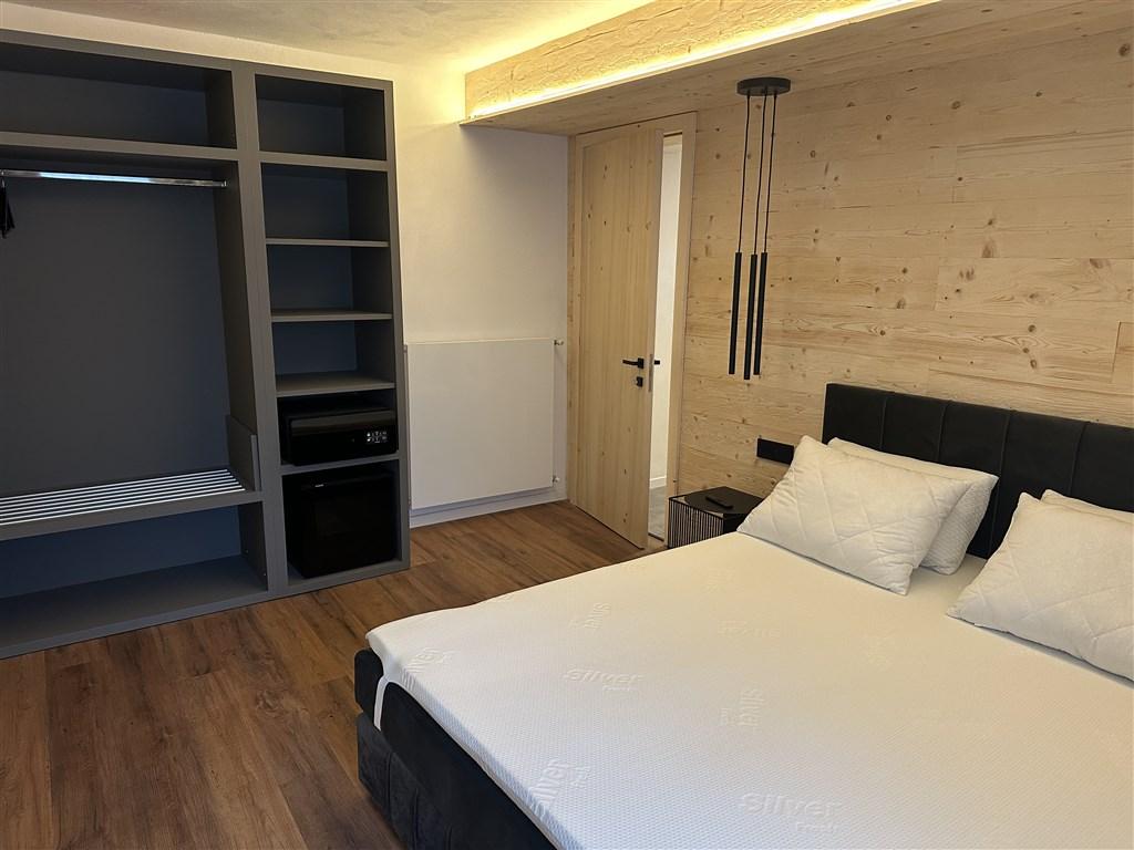 Bilo 2 Luna -1. patro: elegantní apartmán pro 2 osoby, kde se přirozený šarm dubového dřeva propojuje s moderním designem. Nabízí útulnou ložnici s kvalitní manželskou postelí, kuchyň, sociální zařízení a dvě terasy.