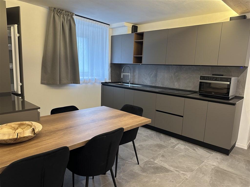 2x TV (poslední generace), minibar, indukční deska, mikrovlnná kombinovaná trouba (s funkcí i pečení), kávovar Nespresso (startovací kapsle v ceně), rychlovarná konvice, WI-FI, trezor, fén, toaletní papír, jar a houbička na nádobí